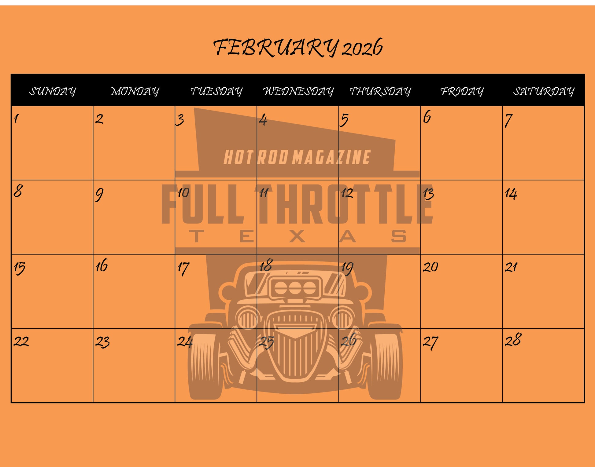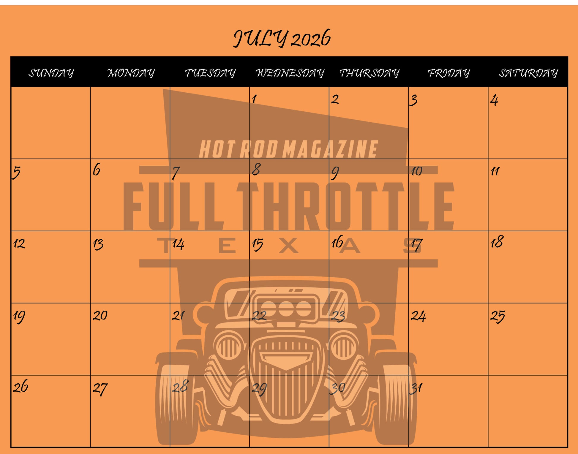 Celebrate the iconic C-10 truck culture with this exclusive 2026 calendar from Full Throttle Texas. Featuring stunning photography from C10ville's legendary "C-10's In The Park" event held in Waxahachie, Texas. This calendar showcases the finest custom and 4x4 trucks in the community. Perfect for enthusiasts who appreciate classic Chevy craftsmanship and the vibrant truck scene. Display month after month of automotive excellence and stay connected to the Full Throttle Texas community year-round.