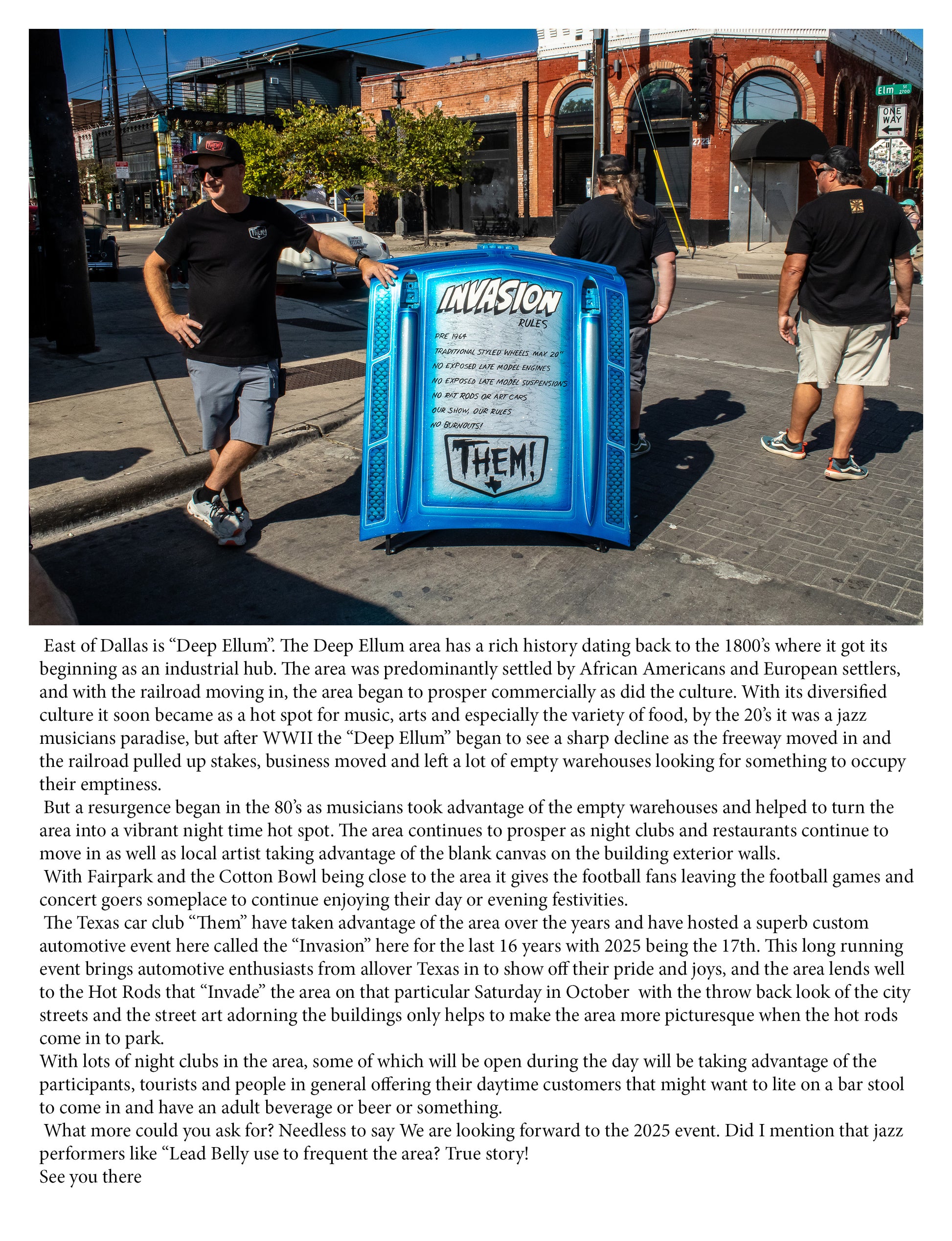 Legendary Deep Ellum's is the spot where the "Invasion 16" Custom Hot Rod Culture event takes place and is captured in comprehensive coverage by "Full Throttle Texas Hot Rod Magazine." Experience the raw energy of Dallas's iconic Art District as "Them" TX Car Club" showcases meticulously crafted classics and custom trucks alongside live music, authentic food, craft beer, and vibrant nightlife. This edition documents the intersection of automotive passion, street culture, and community—featuring stunning builds, tattoo artistry, and the unfiltered spirit that defines modern hot rod culture. Essential reading for enthusiasts who live for the machines, the scene, and the lifestyle.