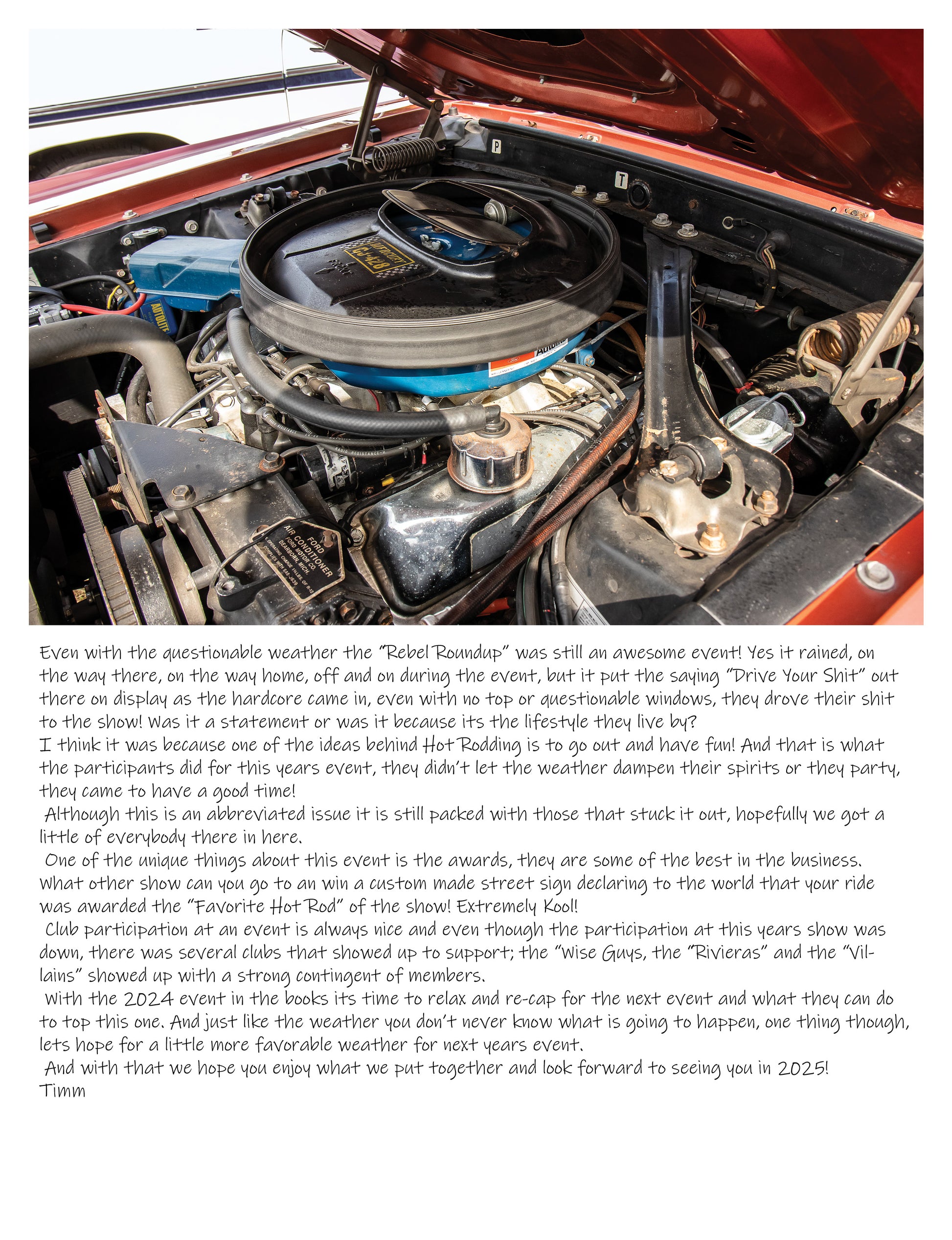"Full Throttle Texas Hot Rod Magazine" captures the 2024 "Rebel Roundup" from Needville, Texas—a premier gathering celebrating authentic era-correct hot rods, custom trucks, and classic motorcycles. This comprehensive coverage documents the event's vibrant atmosphere, featuring vintage-inspired fashion, live DJ entertainment and diverse food vendors. An essential reference for enthusiasts seeking detailed documentation of regional hot rod culture and the craftsmanship on display at one of Texas's most anticipated automotive celebrations.